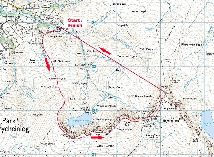Registration at Llyn y fan carpark 1.5 miles east of Llanddeusant Youth Hostel (GR SN 800238)